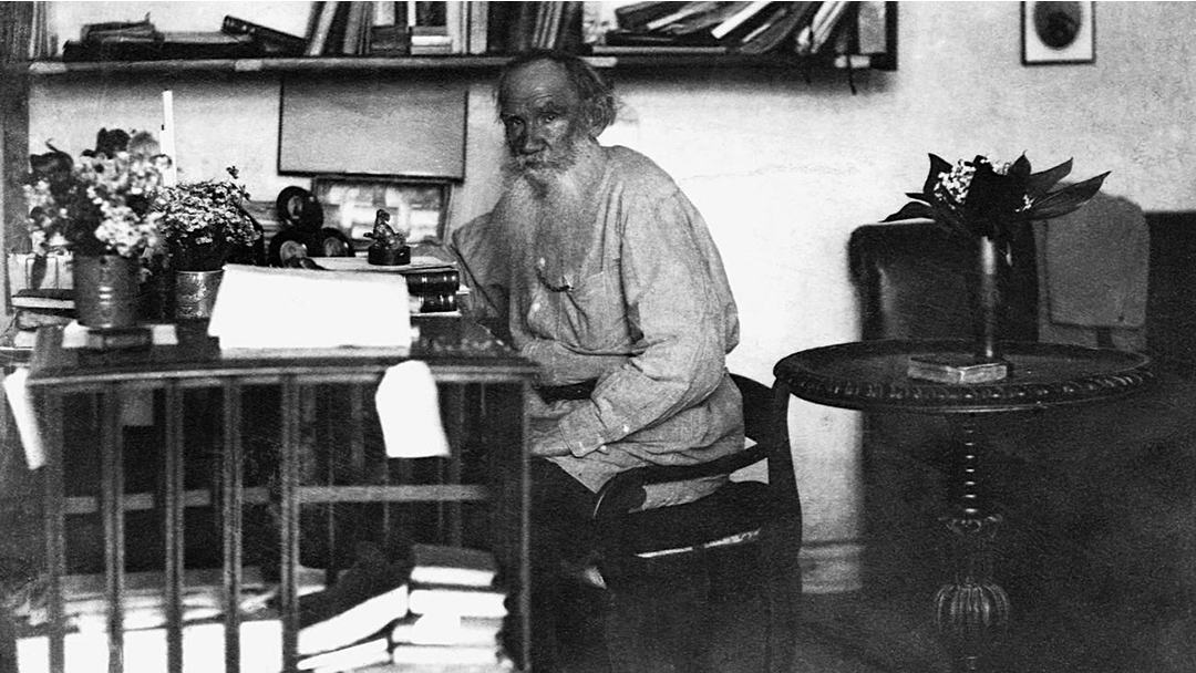 Irudia: Lev Tolstoi bere bulegoan