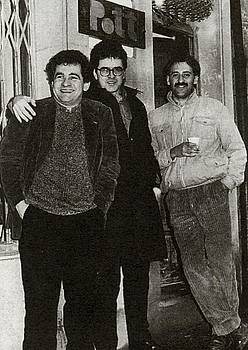 Bernardo Atxaga, Ruper Ordorika eta Joxemari Iturralde, 1986ko apirilean, Oñatin, Henry Bengoa Inventariumen emanaldi baten ondoren