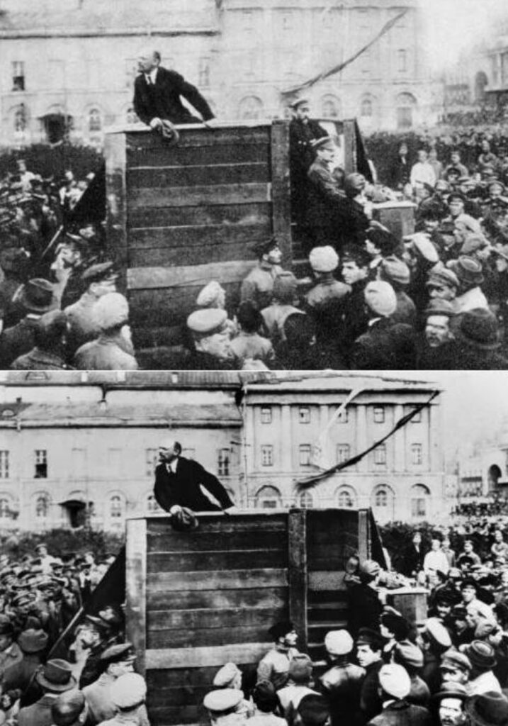 Orduan, Kremlinetik auto beltzen karabana atera zen geltokirantz, banderatxo gorriekin, sidekar-motozikleta saldo batek eskoltaturik, goitik behera larru beltzez estalitako militarrek gidaturik.