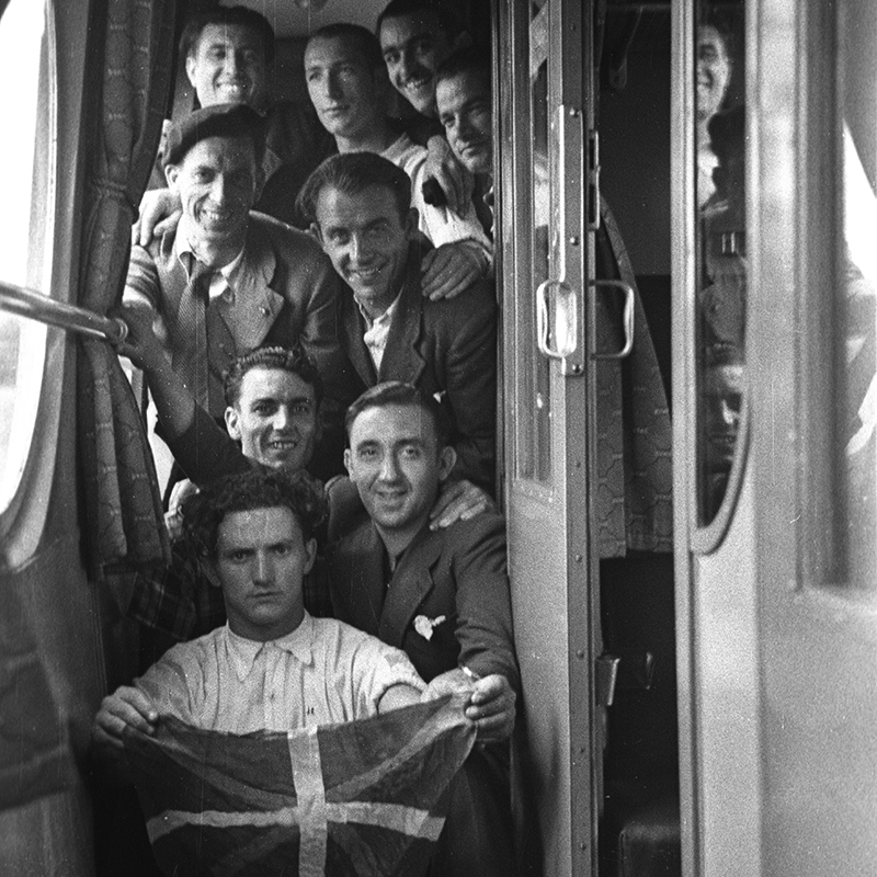 Elai-Alai dantza taldeko kideak erbestean 1937-1939 urte inguruan. Jesus Elosegiren argazkia. Arantzadi Zientzia Elkartea