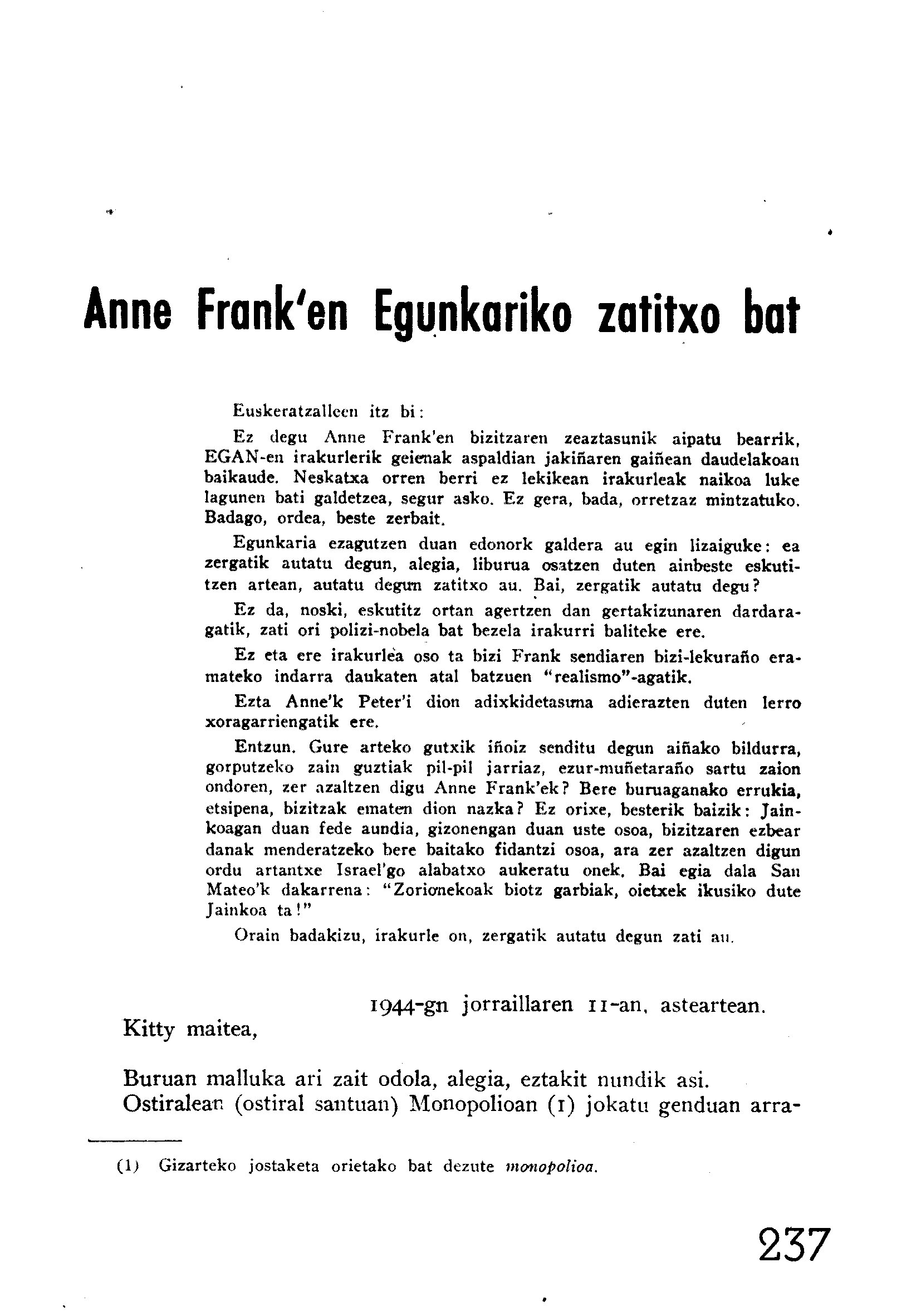 Mari Karmen Garmendiak eta Rudolf de Rijk Eganen argitaratutako «Anne Franck’en Egunkariko zatitxo bat»en hasiera