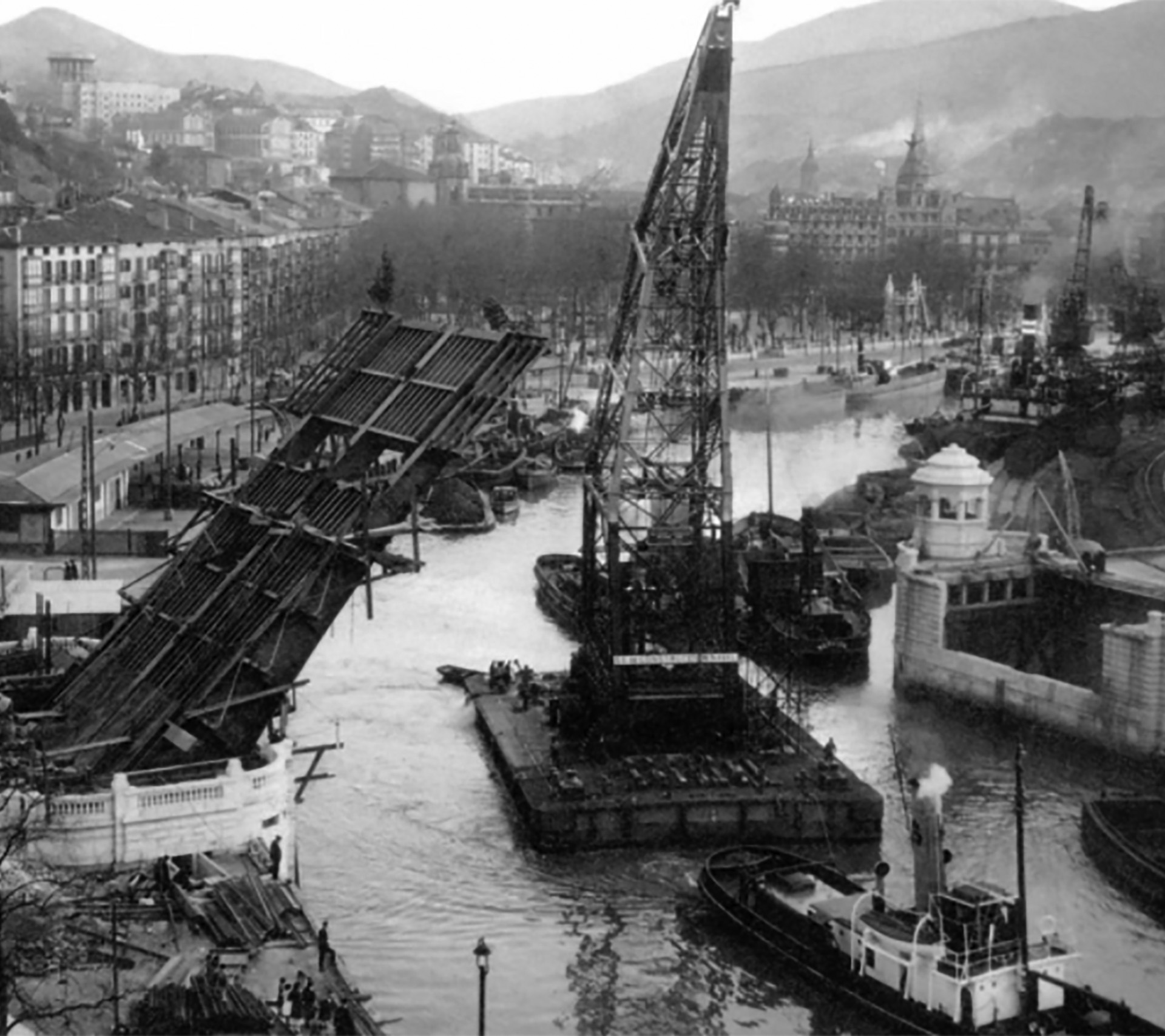 Zamaontziak lanean Bilboko itsasadarrean aspaldiko argazkian. Bilboko Portu Autonomoaren Artxibo Historikoa