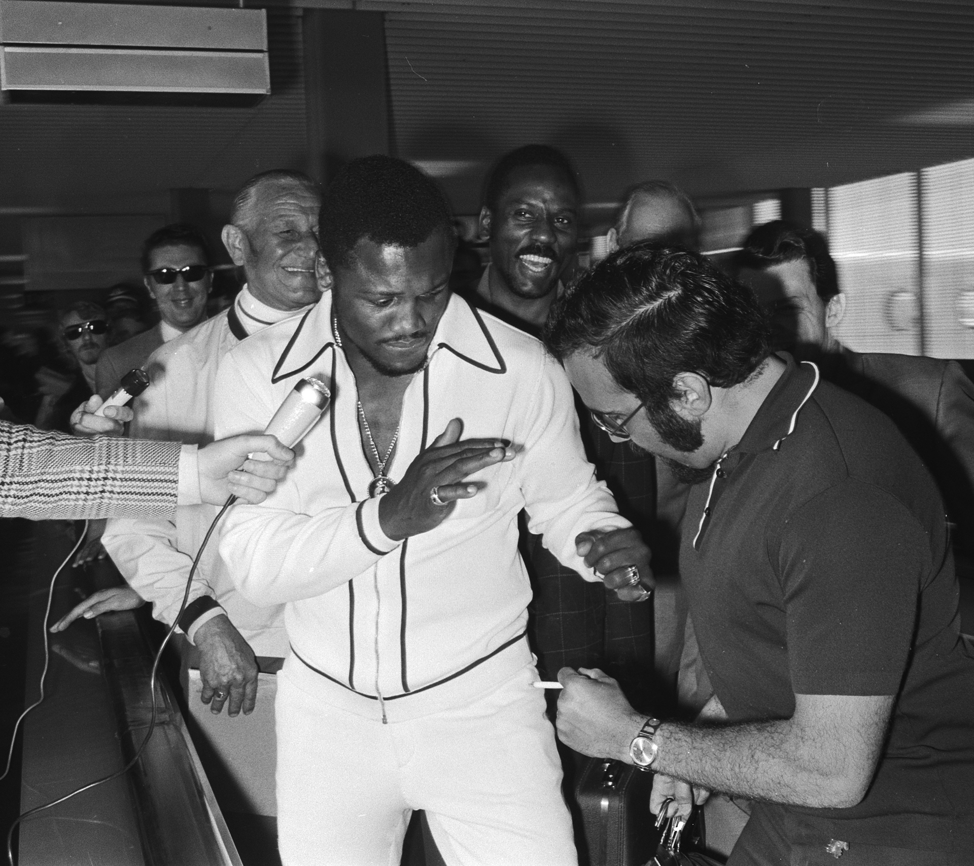 Joe Frazier Noord-Hollandera heltzen 1977ko maiatzaren 15ean. Hans Petersen argazkia