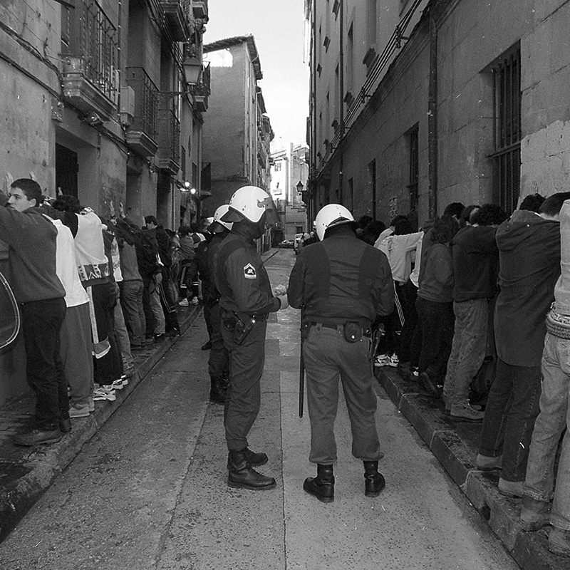 Espainiar polizia Iruñeko Jarauta kalean 6 Jarauta Kalean 1996ko abenduaren 6an. Joxe Lacalleren argazkia