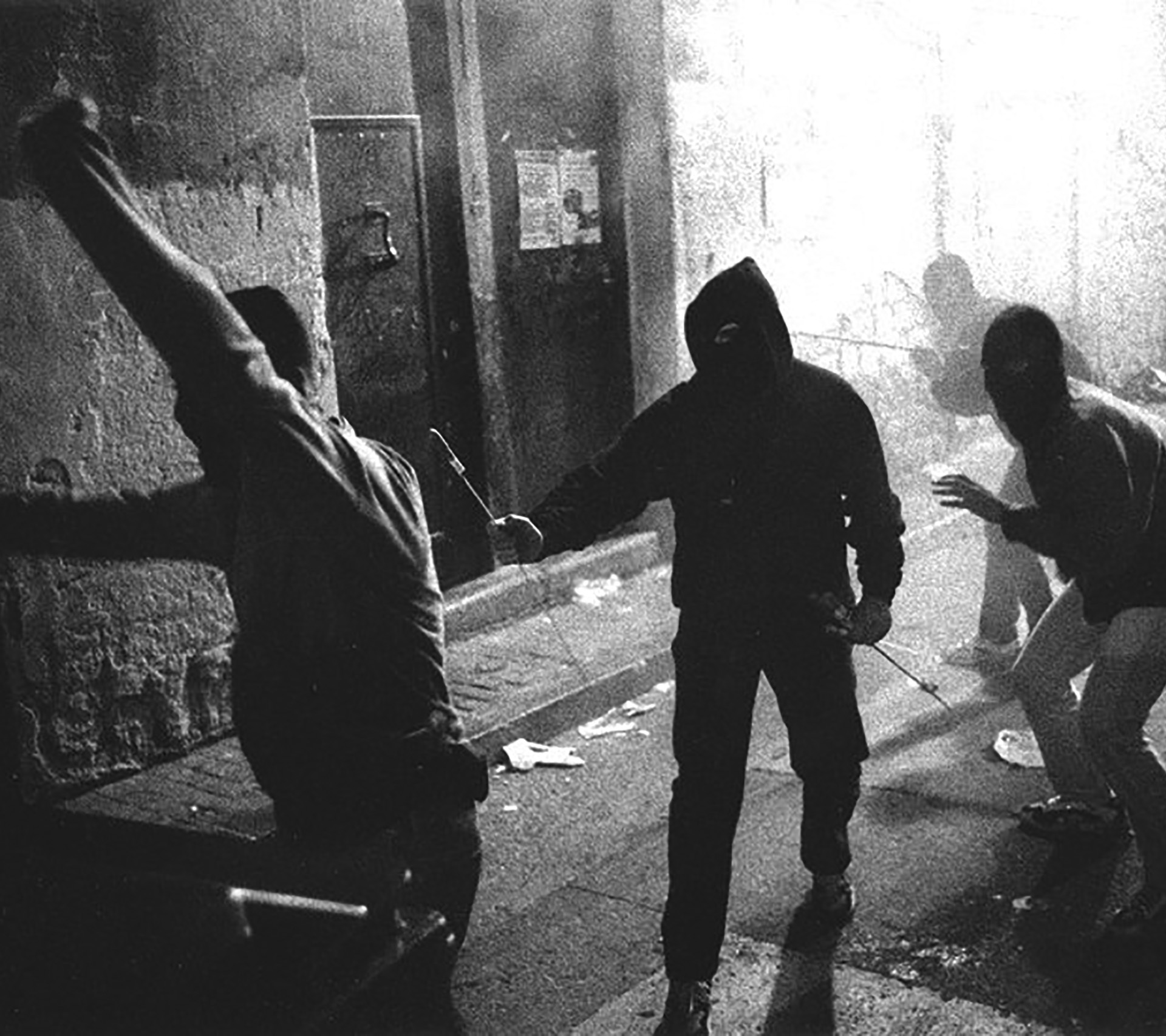 Gazteak Espainiako poliziaren kontra borrokan Jarauta kalean 1990eko hamarkadaren erdialdean. Clemente Bernarden argazkia