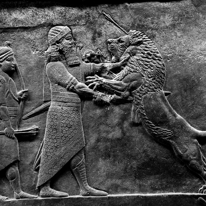 Ashurbanipal II.aren lehoi ehiza baxuerliebearen detailea, K.a. 7. mendea. Osama Shukir Muhammed Aminen argazkia, British Museum.